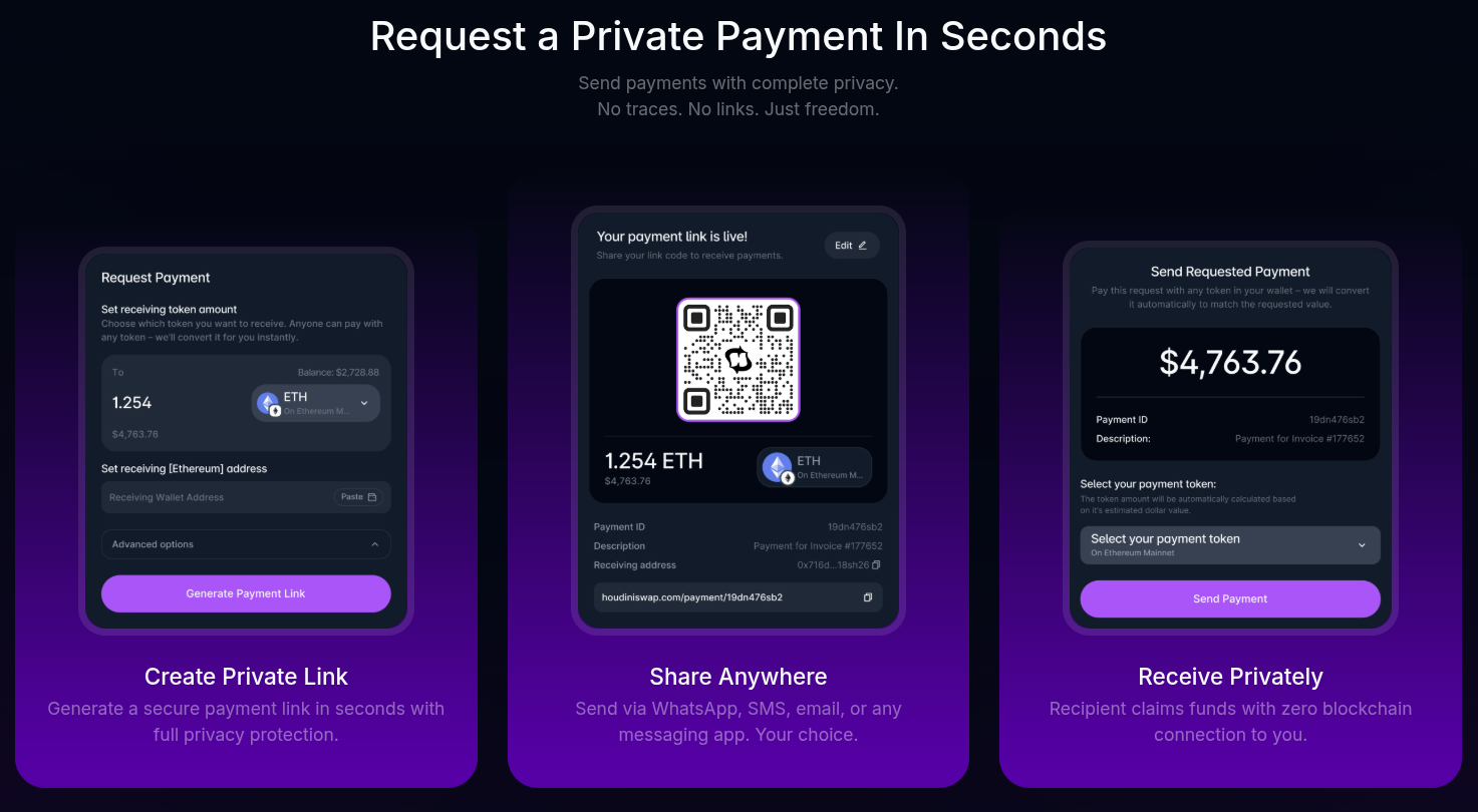 Houdini Swap, a centralized instant exchange aggregator, has rolled out a private payments service that allows users to receive payments on their preferred assets without revealing their on-chain address.