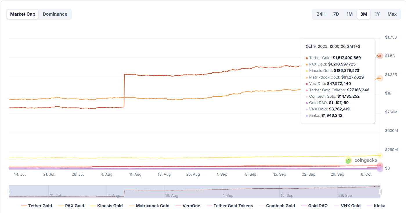 As it turns out, XAUt isn’t the only gold token on the rise. Notably, the entire tokenized gold ecosystem grew by 1.4%, reaching a market capitalization of $3.09 billion. In addition, Pax Gold (PAXG), hovering around $1.22 billion By market capitalizationsoared 4.38%, ranking second behind Tether Gold. in Past 7 days.